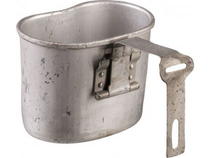 Originální hliníkový vojenský polní ešus Wzór 1970 ve tvaru ledviny. Dvoudílné provedení, se sklopnou rukojetí a háčkem pro snadné zavěšení. Pocházející ze zásob ozbrojených sil...