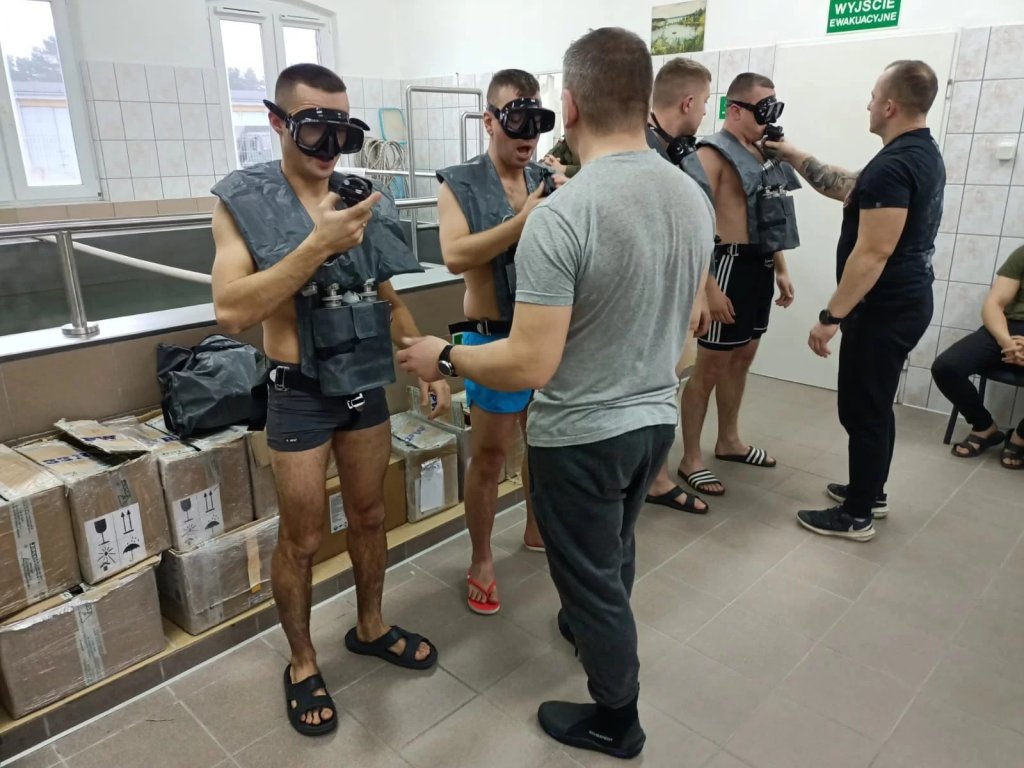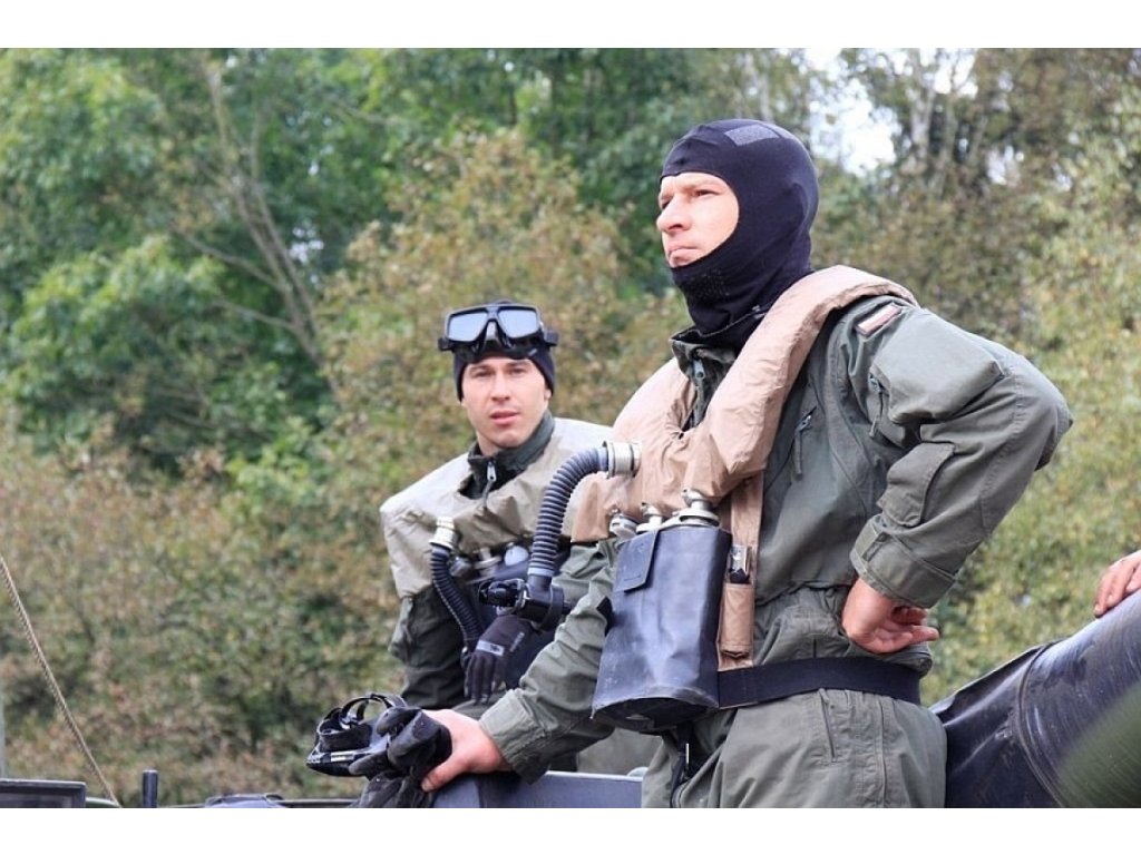 - Kombinace záchranné vesty a respirační ochrany z výstroje polské armády.