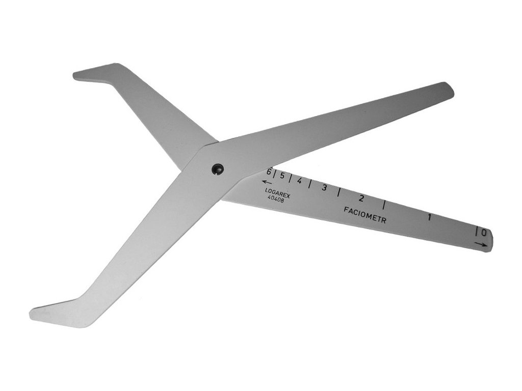 Tento faciometr značky Logarex byl používán u československé armády a civilní obrany, a sloužil k výběru správné velikosti masek pro jednotlivé uživatele na základě měření čelisti, nosu a výšky obličeje.