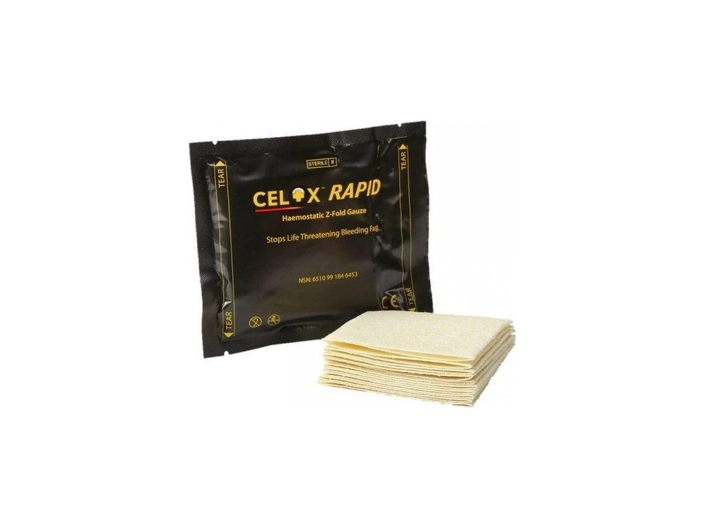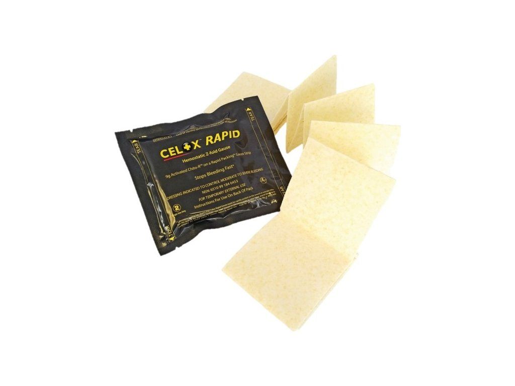 - Celox™ Rapid Z-Fold Haemostatic Gauze - One Gauze Strip 1,5 m x 7,6 cm.