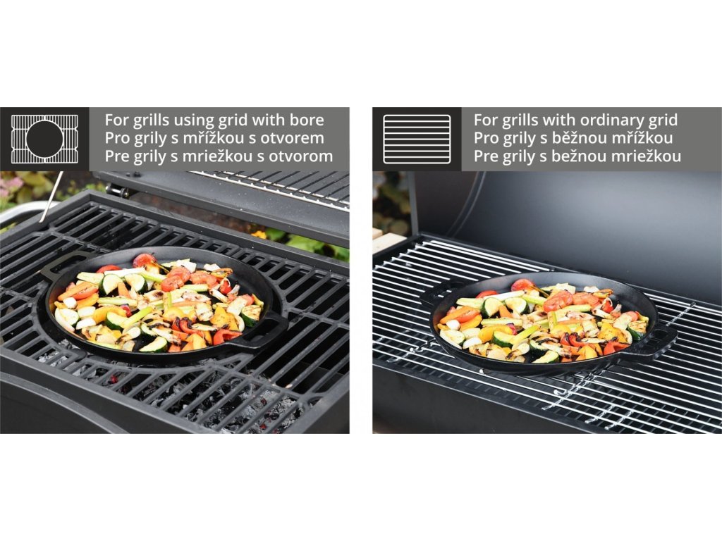- Pánvičku lze ale použít i pro standardní grily, které mají běžnou mřížku bez otvoru.