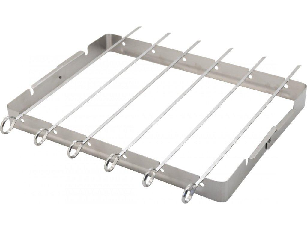 - Rámeček z nerezové oceli má rozměry 35 x 25 cm a jeho použitím je výrazně usnadněné otáčení jednotlivých špízů při jejich přípravě.