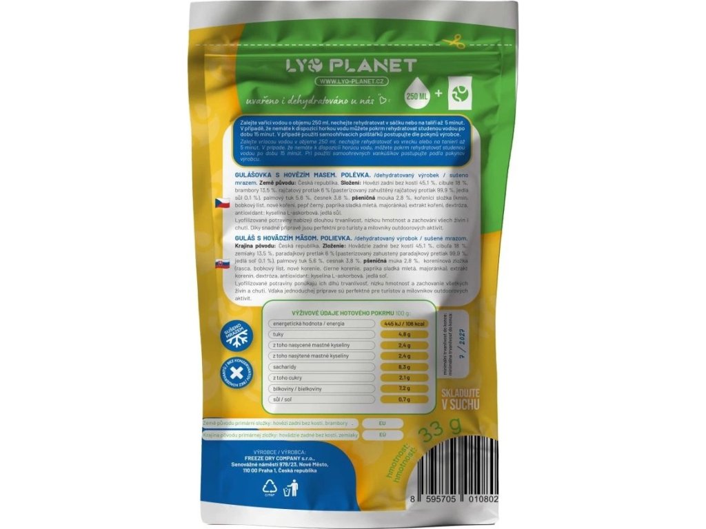 Gulášová polévka s masem - FDC mrazem sušené Lyo