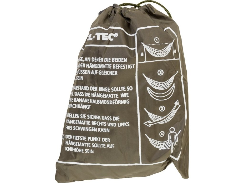 - závěsná síť pro spaní v olivové barvě, vyrobená ze speciáního nylonového materiálu