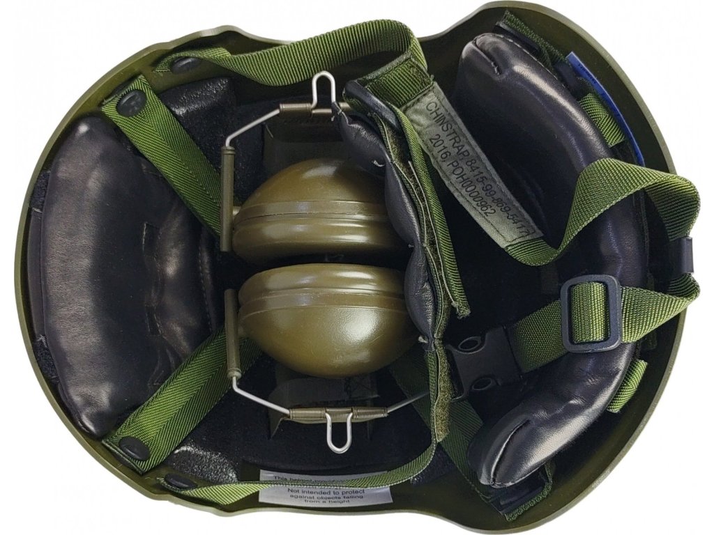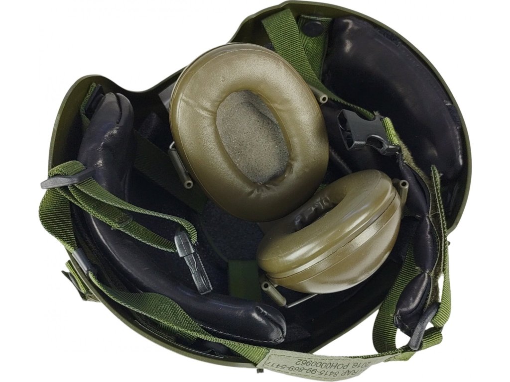 - Součástí jsou certifikované skládací chrániče sluchu Peltor® H72A-02 (NSN CH-4240-99-130-8500 1999 PELTOR LTD / CE 95 EN352-1:1993) chránící před nadměrným hlukem na letišti, chrániče jsou v helmě uchyceny dvěma pásky na suchý zip, a lze je snadno sundat a využívat jednotlivé díly samostatně.