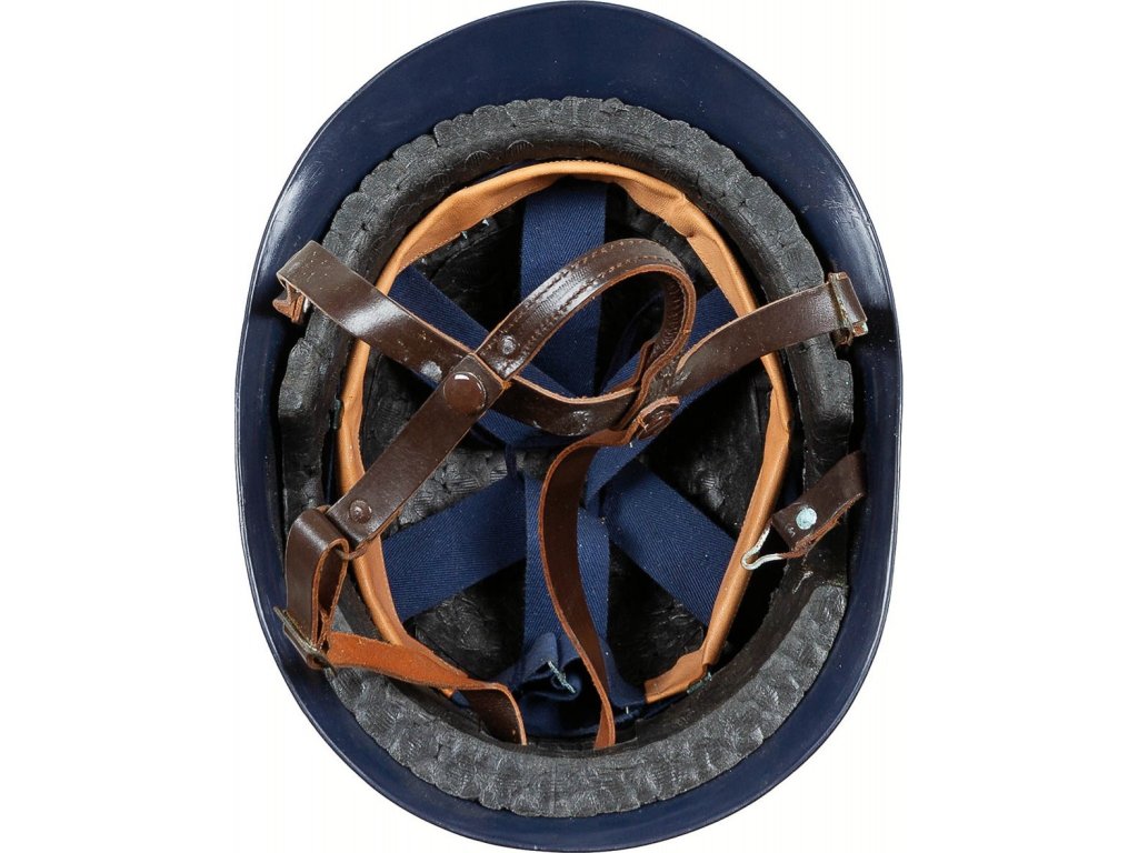 Originální francouzská vintage policejní helma belgického výrobce LEVIOR®. Balistická plastová konstrukce s kompletní vložkou, odpružením a podbradním páskem. Na přední straně přilby nepřehlédnutelný kovový odznak hořící bomby. Původní položka vydávaná polovojenským jednotkám.