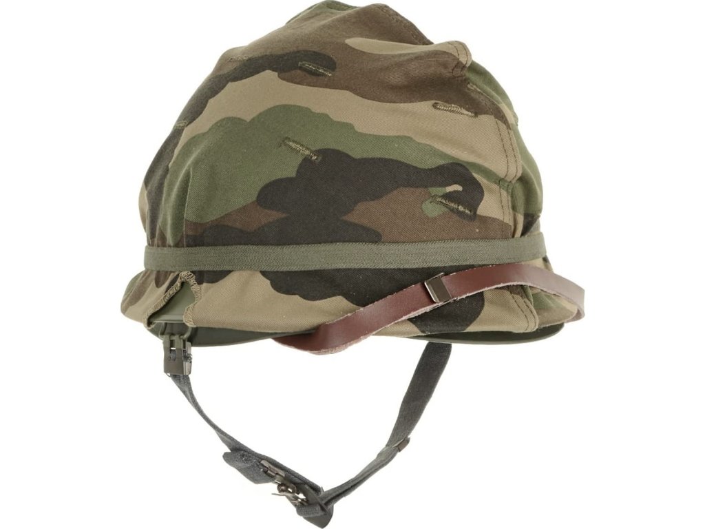 - Vojenská kompletní helma složená ze dvou přileb: kovové a plastové, kamuflážního potahu a pružného obvodového popruhu "tygřích očí"