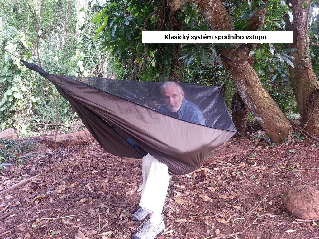 - Spodní vstup pro rychlé nalézaní a vylézání z hamaky