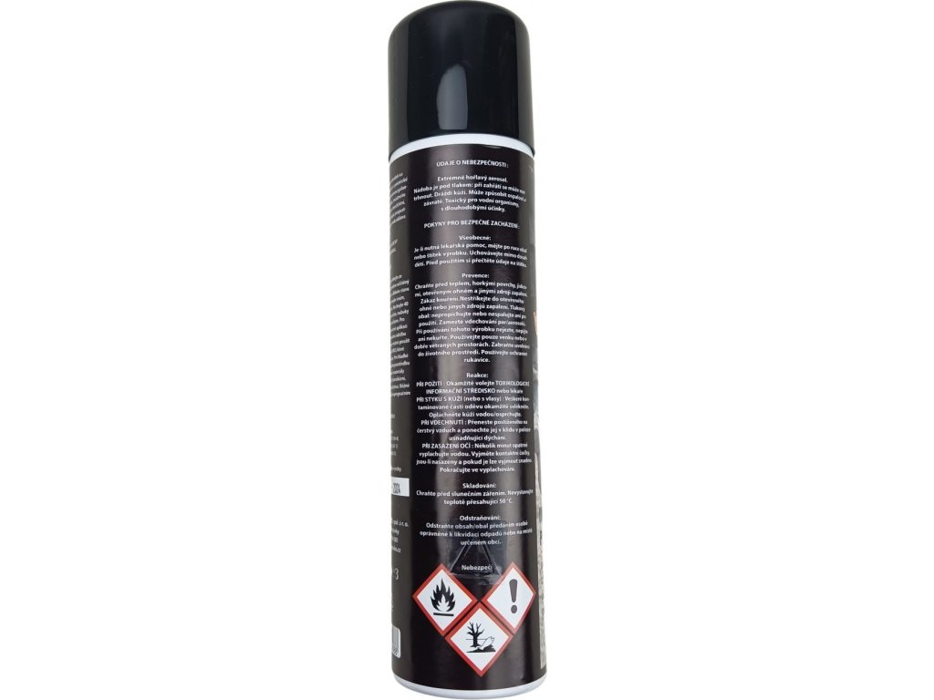 Balení: hliníková nádobka, sprey s nosným plynem propan-butan