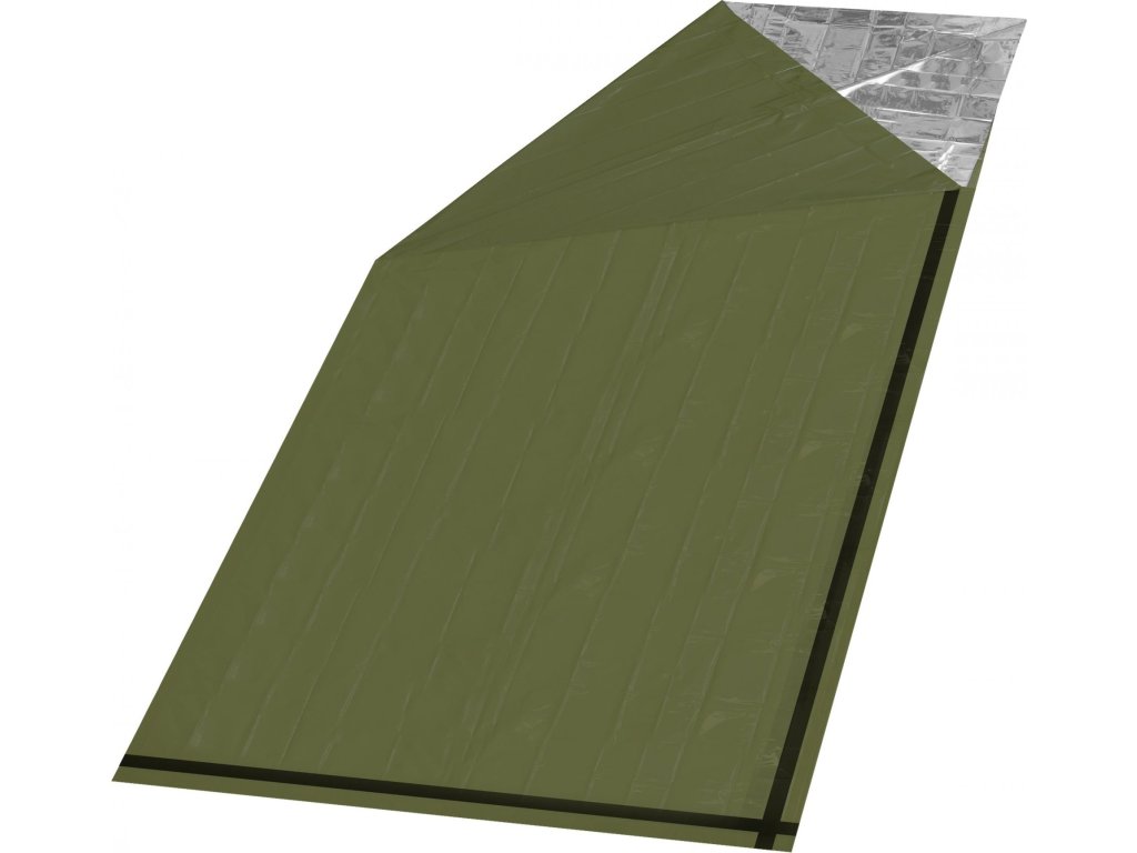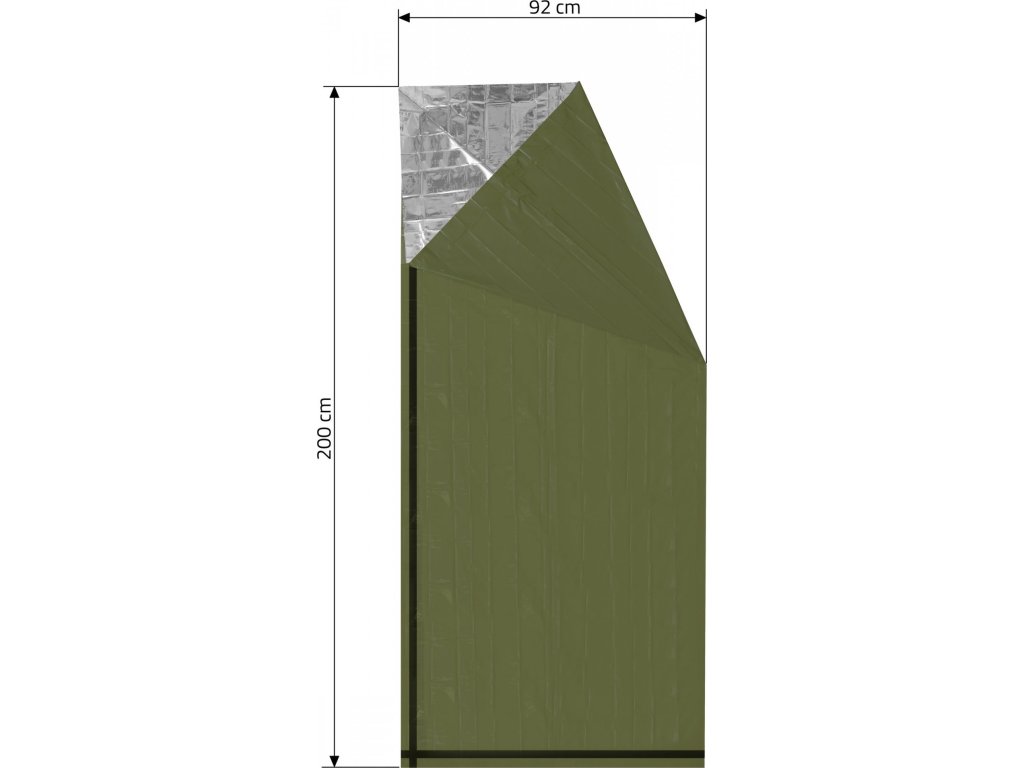 - ISOTHERMAL FOIL SOS BAG GREEN SURVIVAL ALU EMERGENCY BLANKET, ALUMINIUM COATED, SILVER / OLIVE REVERSIBLE.