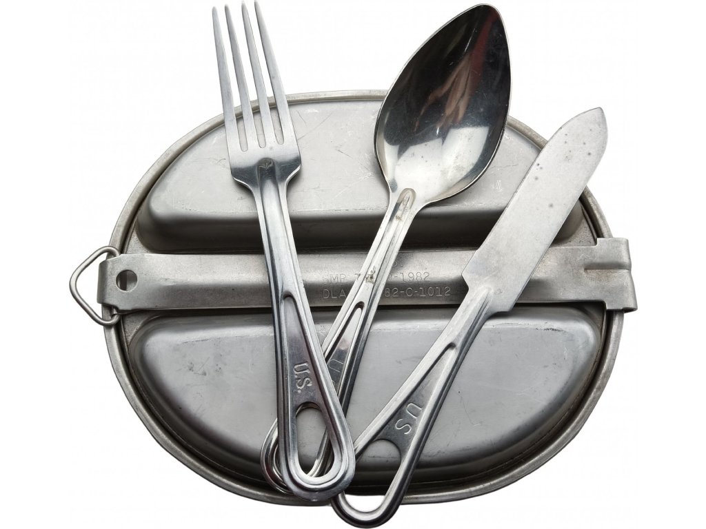 Jídelní misky (ešus) komplet set US nerez s příborem originál