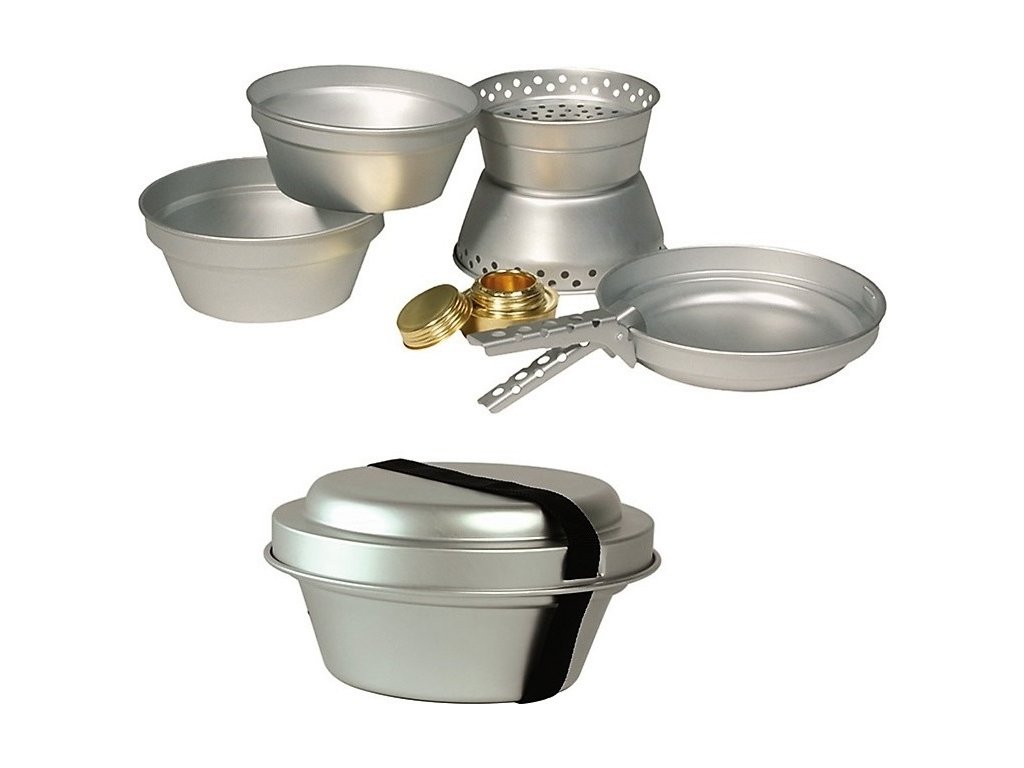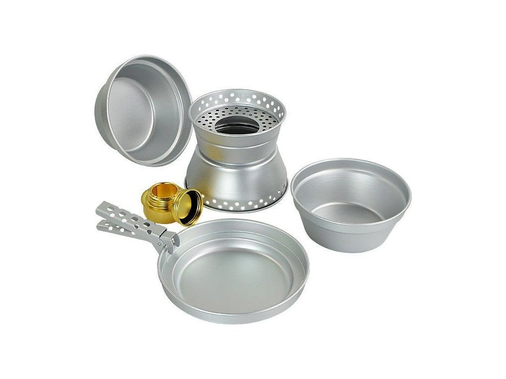 Bivakovací sada, která obsahuje mosazný lihový hořák a nádobí, vyrobené z eloxovaného hliníku. Hořák má v sobě hygroskopickou tkaninu, kterou se doporučuje namočit alkoholem, nejlépe lihem. Standardní doba ohřevu na bod varu 250 ml vody trvá přibližně 8 minut. S touto sadou můžeme rychle a bez problémů připravit horké jídlo během pobytu v přírodě. Možnost složení všech dílů do jednoho, což dále usnadňuje jeho přepravu, například v batohu.