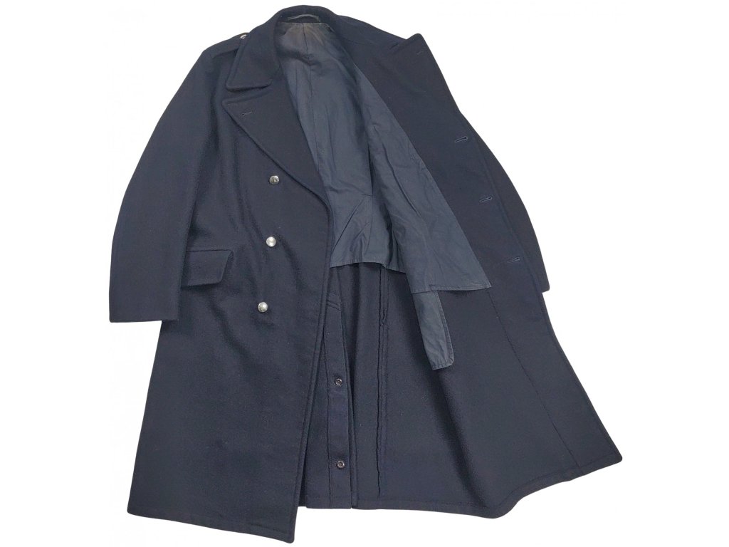 Originální vlněný dlouhý zimní kabát ze zásob nizozemské armády. S vnitřní hladkou podšívkou a s dvouřadým zapínáním na stříbřité knoflíky. Tmavě modrá barva. Kabáty jsou použité ale v celkově dobrém a zachovalém stavu, jde o vyřazené vojenské vybavení z vojenských přebytků.