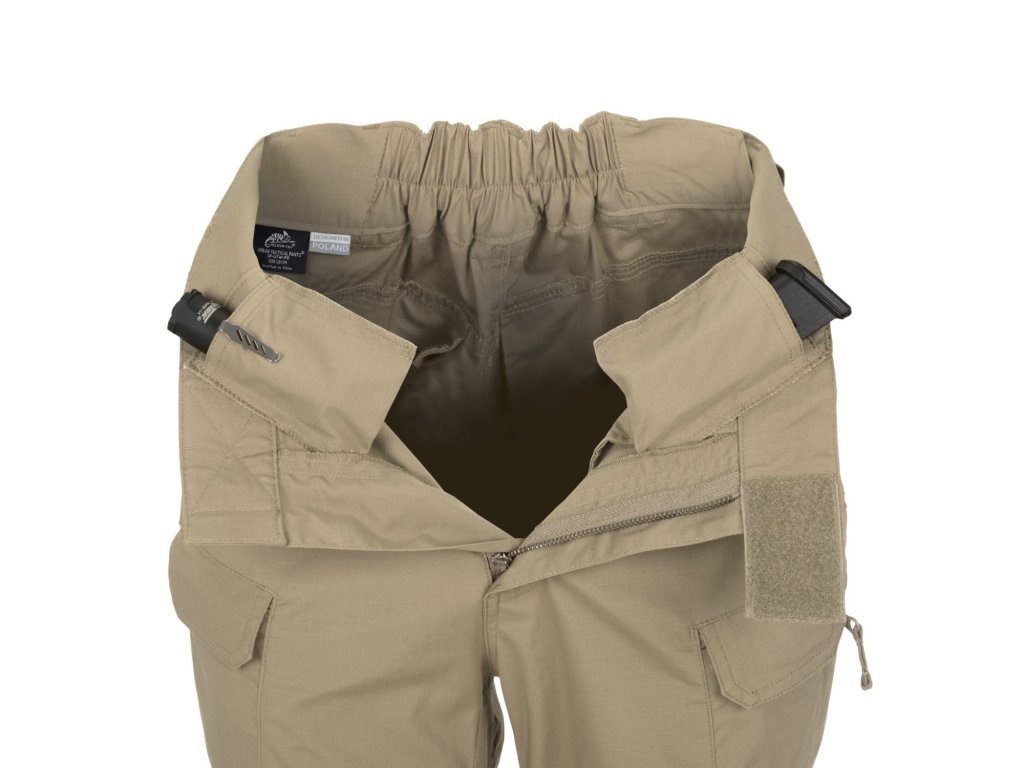 Dámské kalhoty WOMENS UTP Resized® (Urban Tactical Pants®) polské renomované taktické společnosti Helikon-Tex®, jsou pokročilé taktické kalhoty pro ženy, určené pro střelecké nadšence, milovníky outdooru a každodenní uživatele. Tyto dámské taktické kalhoty jsou vyrobeny tak, abyste mohli pohodlně nosit základní vybavení, jsou nenápadné a umožňují diskrétnost při provozu v městském prostředí. Každá z 12 kapes byla navržena pro uložení zásobníků, zavíracího nože, malé lékárničky nebo multifunkčního nářadí, což uživateli ponechává plnou svobodu při organizování vybavení. Promyšlená konstrukce znamená, že nesená výbava bude blízko těžiště těla a umožní pohodlný pohyb po mnoho hodin. Díky speciálně navrženým kapsám na kolenou mohou kalhoty WOMENS UTP Resized® pojmout měkké chrániče (Low Profile Protective Pads), které zvyšují bezpečnost uživatele při práci v různorodém a nejistém terénu. Široká poutka na opasek, umožňující použití opasku o šířce až 50 mm, umožňují spárovat tyto kalhoty s většinou taktických a pracovních opasků dostupných na trhu. Změna velikosti v názvu produktu znamená, že jeho velikost byla změněna oproti základnímu produktu, v tomto případě WOMENS UTP® (URBAN TACTICAL PANTS®). Při výběru velikosti doporučujeme být obzvláště opatrní.