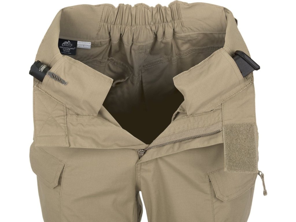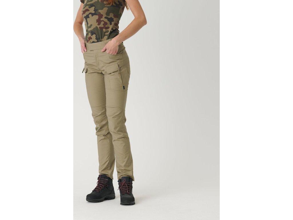 Dámské kalhoty WOMENS UTP Resized® (Urban Tactical Pants®) polské renomované taktické společnosti Helikon-Tex®, jsou pokročilé taktické kalhoty pro ženy, určené pro střelecké nadšence, milovníky outdooru a každodenní uživatele. Tyto dámské taktické kalhoty jsou vyrobeny tak, abyste mohli pohodlně nosit základní vybavení, jsou nenápadné a umožňují diskrétnost při provozu v městském prostředí. Každá z 12 kapes byla navržena pro uložení zásobníků, zavíracího nože, malé lékárničky nebo multifunkčního nářadí, což uživateli ponechává plnou svobodu při organizování vybavení. Promyšlená konstrukce znamená, že nesená výbava bude blízko těžiště těla a umožní pohodlný pohyb po mnoho hodin. Díky speciálně navrženým kapsám na kolenou mohou kalhoty WOMENS UTP Resized® pojmout měkké chrániče (Low Profile Protective Pads), které zvyšují bezpečnost uživatele při práci v různorodém a nejistém terénu. Široká poutka na opasek, umožňující použití opasku o šířce až 50 mm, umožňují spárovat tyto kalhoty s většinou taktických a pracovních opasků dostupných na trhu. Změna velikosti v názvu produktu znamená, že jeho velikost byla změněna oproti základnímu produktu, v tomto případě WOMENS UTP® (URBAN TACTICAL PANTS®). Při výběru velikosti doporučujeme být obzvláště opatrní.