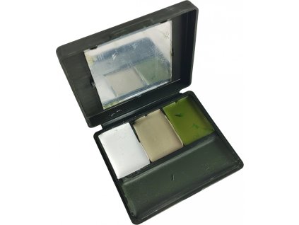 Maskovací barvy na obličej v plastové krabičce s vyjímatelným zrcátkem. Paleta obsahuje 4 různé kamuflážní barvy. Maskovací barvy pomáhají vojákům splynout s okolním prostředním...