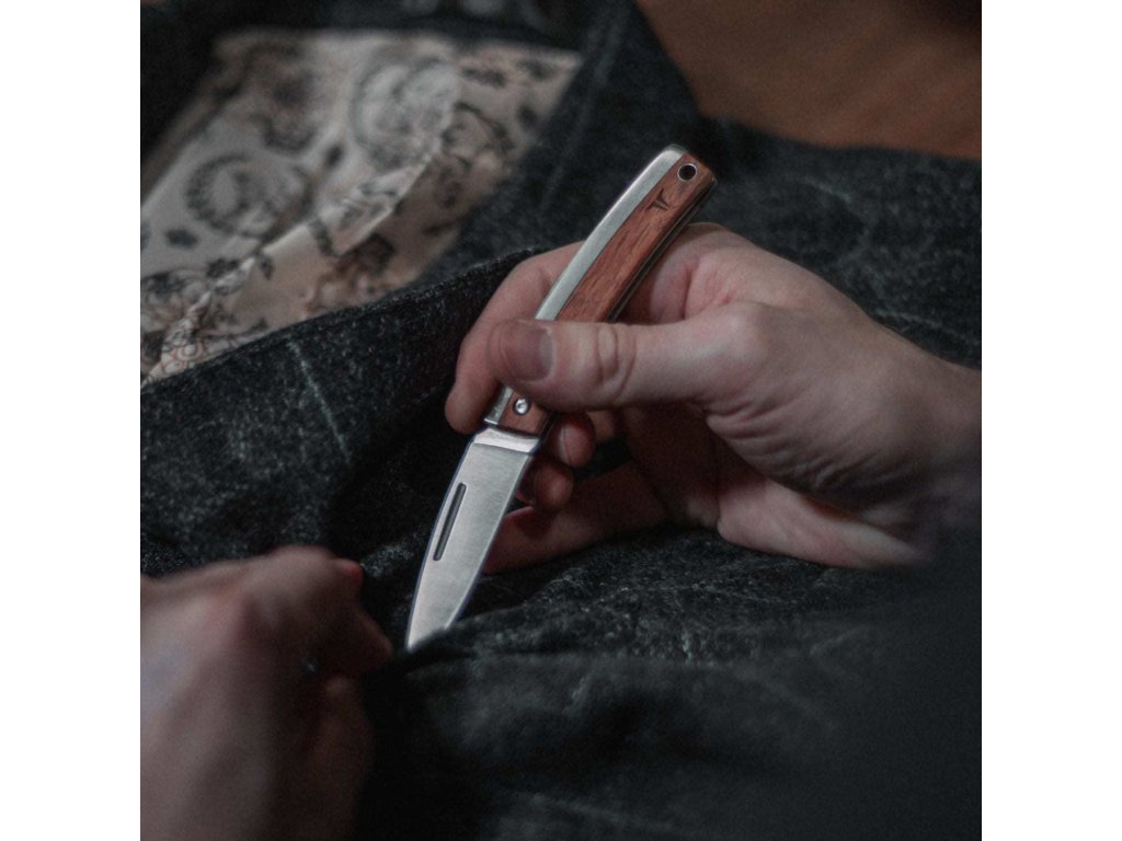 Classic Gentlemans Knife od značky True Utility je stylový zavírací nůž, který je díky svému designu ideální volbou pro každého gentlemana. Ostří nože o délce 6,5 cm je vyrobeno z velmi odolné nerezové oceli 8Cr13MoV. Ostří je usazeno v zakřivené rukojeti, která je doplněna o dřevo ze skutečného palisandru. Tato kombinace dodává noži jedinečný a elegantní vzhled, se kterým zaujmete na první pohled. Dále jistě oceníte kompaktní rozměry, díky kterým se pohodlně vejde i do kapsy na mince. Nůž zaujme také krásnou dárkovou kazetou ze dřeva.