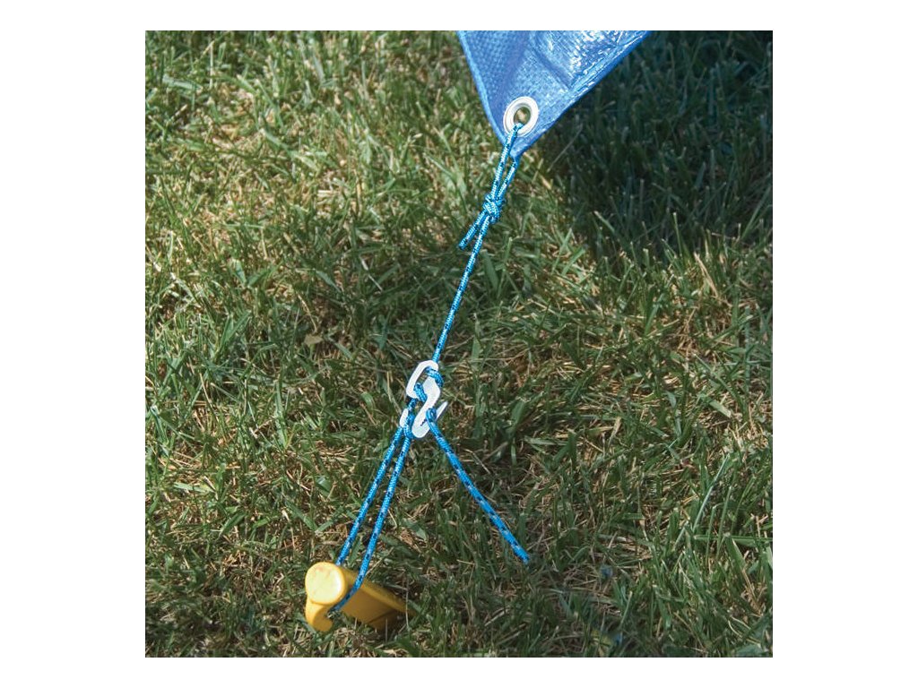 Varování: Nepoužívejte tam, kde by odpojení mohlo způsobit zranění nebo poškození majetku. Ne na lezení. Výrobce nenese odpovědnost za ztrátu, zranění nebo poškození způsobené nesprávným použitím produktu. Před použitím zkontrolujte výrobek a lano. NEPŘEKRAČUJTE stanovený limit zatížení (50 lb. / 22,5 kg) produktu nebo lana, podle toho, která hodnota je nižší. Výrobce neposkytuje žádné záruky týkající se šňůry, lana nebo šňůry, které nejsou obsaženy v tomto balení. Vyvarujte se ostrých hran, horkých nebo abrazivních povrchů.