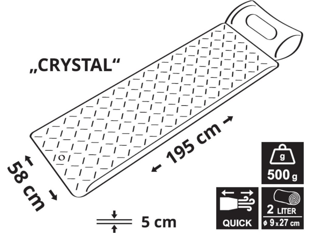 - Karimatka Crystal je nafukovací a díky svému tvarování nabízí velmi komfortní použití.