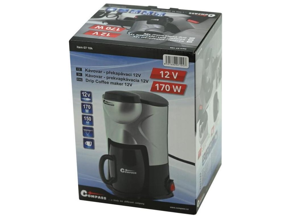 - Překapávací kávovar s objemem 150 ml / konvice na čaj na 12V DC (max.170W).