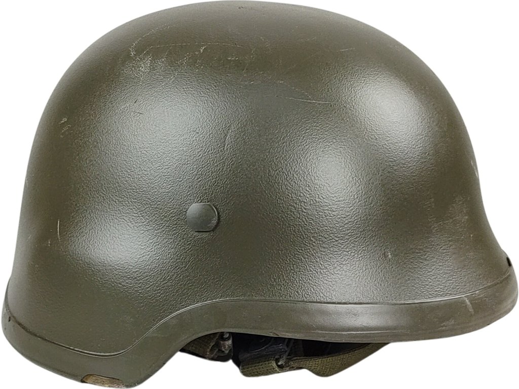 Kevlarová helma pozemních sil německého Bundeswehru. Neprůstřelná přilba, která byla používaná v armádě k ochraně hlavy vojáka před střelami a střepinami. Vyřazené helmy v použitém, ale poměrně zachovalém stavu, bez garance balistické ochrany.