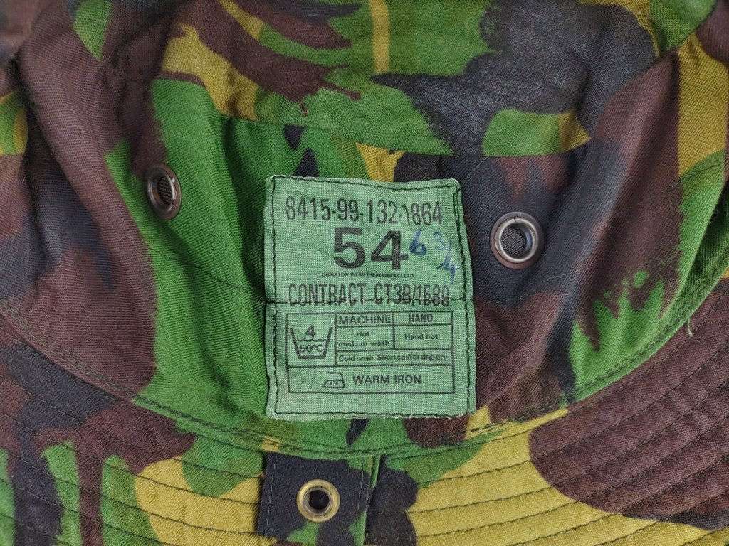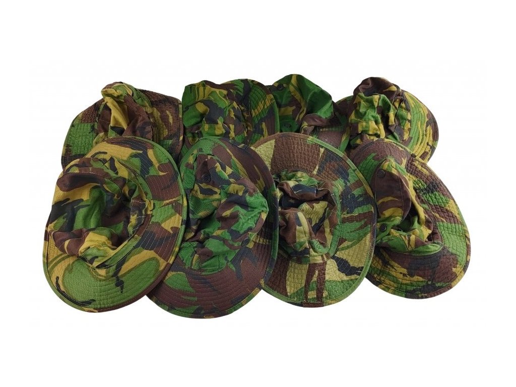Originální bojový klobouk Tropical v lesním maskovacím potisku DPM starší verze P68 / P84 z výstroje britské armády během války o Falklandy (1982)