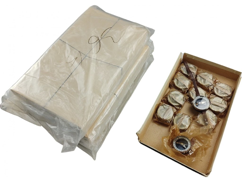 - Nové zboží (kompasy jsou nepoužité, dlouhodobě skladované, vyřazené z armádních zásob).