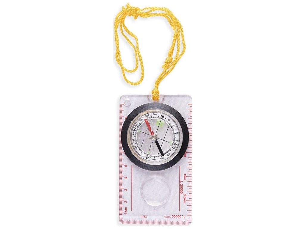Kompas / mapovka s průzorem a poutkem na zavěšení.Buzola je jednoduchý přístroj pro orientaci a navigaci v terénu.Základem buzoly je kompas k určování světových stran doplněný otočným úhloměrem k měření azimutu.Má magnetickou střelku,která se vlivem zemského magnetického pole natáčí ve směru magnetického severu a jihu.