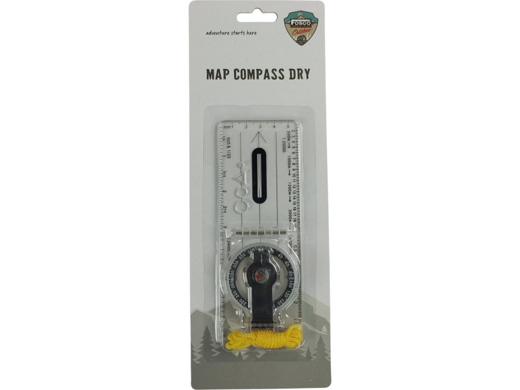 Skládací mapový kompas s průzorem a výklopným zrcátkem. Buzola je jednoduchý přístroj pro orientaci a navigaci v terénu. Základem buzoly je kompas k určování světových stran doplněný otočným úhloměrem k měření azimutu. Má magnetickou střelku, která se vlivem zemského magnetického pole natáčí ve směru magnetického severu a jihu.