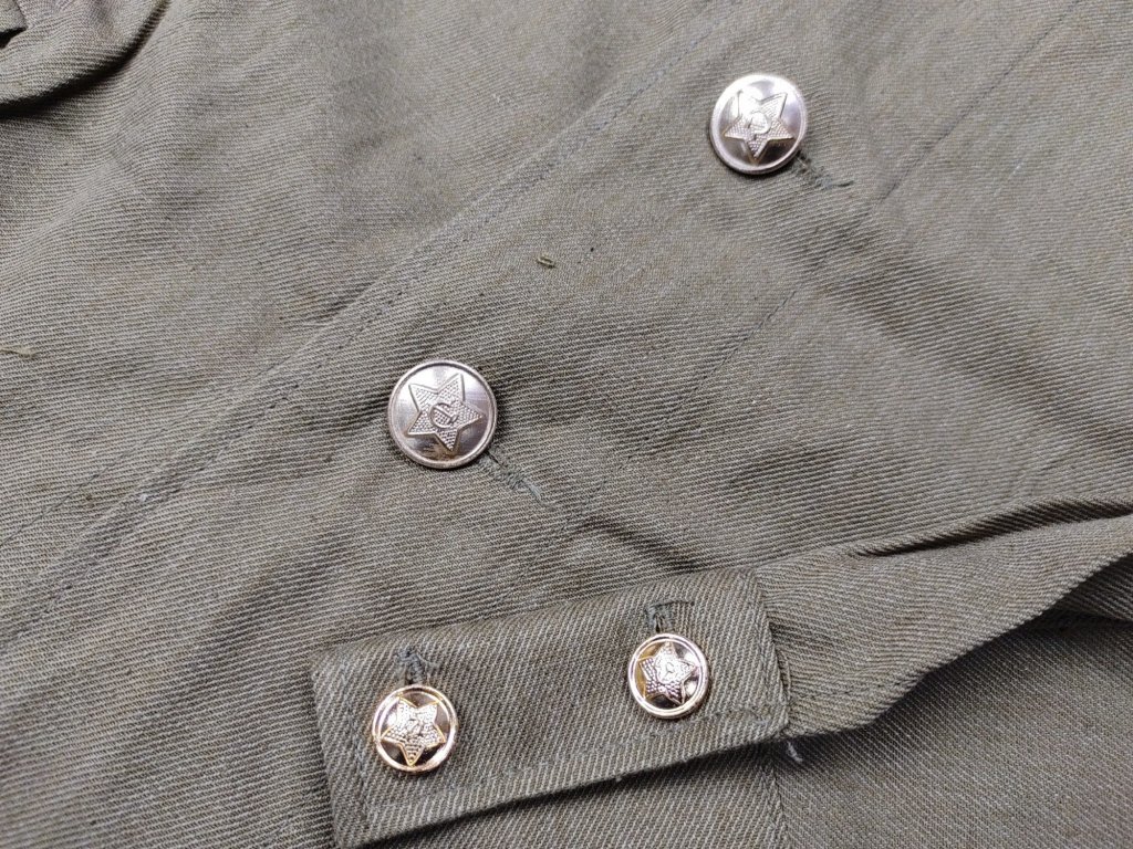 - Knoflíky převážně pozlaceného designu "modernizovaného" novějšího modelu M-73, nástupce M-69, zdobené pěticípou hvězdou, srpem a kladivem.