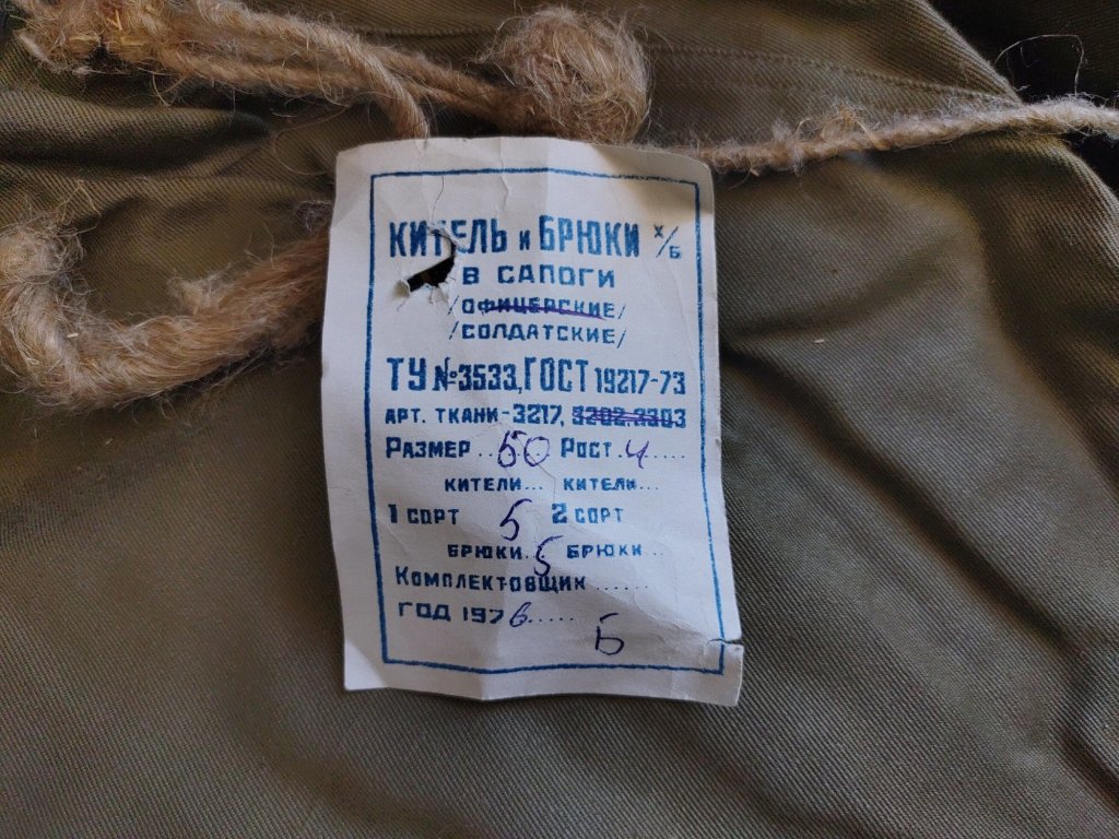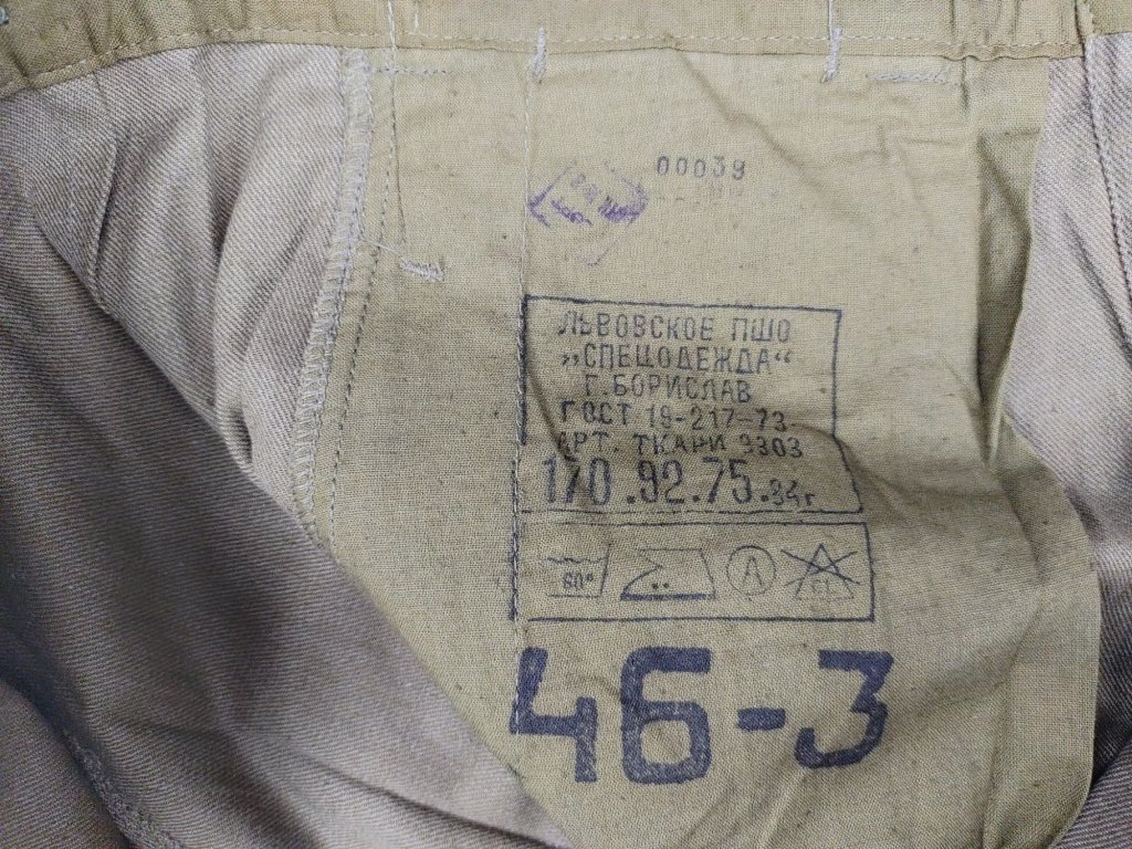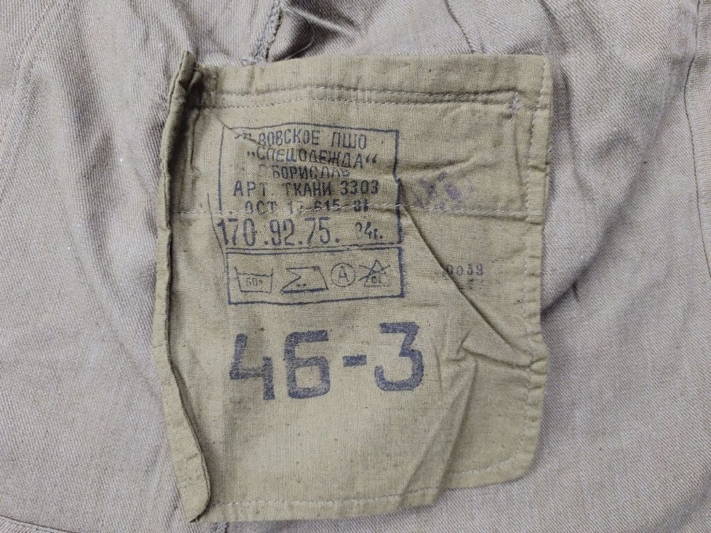 Panuje neshoda v tom, zda se jedná o prošívanou bavlnu nebo vlněný gabardén. Oba materiály se používaly v gymnasterce. Model „M69“ se nosil s ušankou a často i s kabátem „Shinel“.