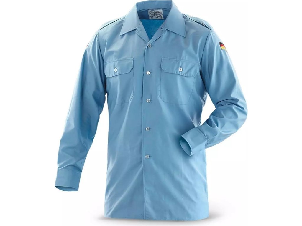 Námořnická modrá košile používaná u německého Bundeswehru. Originální světle modrá pánská košile s dlouhým rukávem ze základního vybavení námořnictva Bundesmarine. Košile má dvě kapsy ve výšce hrudi a zapíná se na knoflíky po celé přední délce, což usnadňuje oblékání. Manžety dlouhých rukávů se zapínají na knoflík a na pažích jsou německé státní vlajky, které lze snadno a jednoduše odpárat, pokud by byla potřeba.