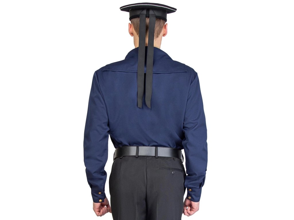 Uniforma sovětských námořníků. Modrá námořnická košile sovětské námořní flotily. Přebytečný kus vybavení Sovětského svazu, nové a nikdy nepoužité.