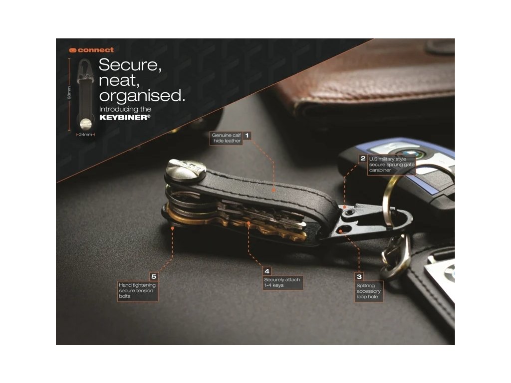 Praktická klíčenka Keyranger od značky True Utility pomůže udržet pořádek ve vašich klíčích. Je vyrobena z prvotřídní černé kůže, která je spojena klipem a šestihranným šroubem. Kůže zabraňuje poškrábání vašich věcí klíči. Klíčenka pojme až 4 klíče. V karabině se nachází zdířka, díky které k ní můžete připnout další příslušenství.