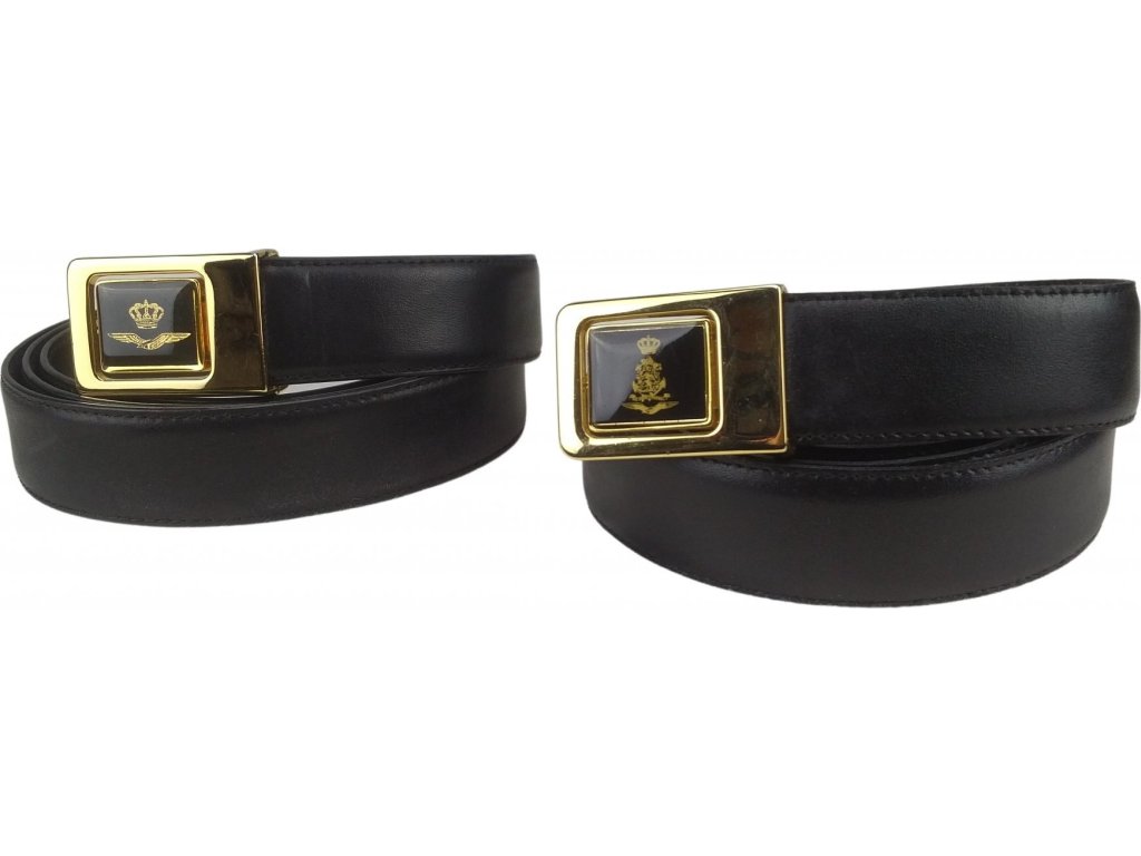 Hladký kožený opasek o šířce 29 mm. Doplněn svírací přezkou, s vysoce leštěným povrchem imitace zlata, zdobenou motivem námořnictva, nebo letectva, vyrobenou v Itálii (Made in Italy). Pás má minimálně 6 otvorů v rozmezí 12,5 cm, a lze jej snadno zkrátit na libovolnou délku.