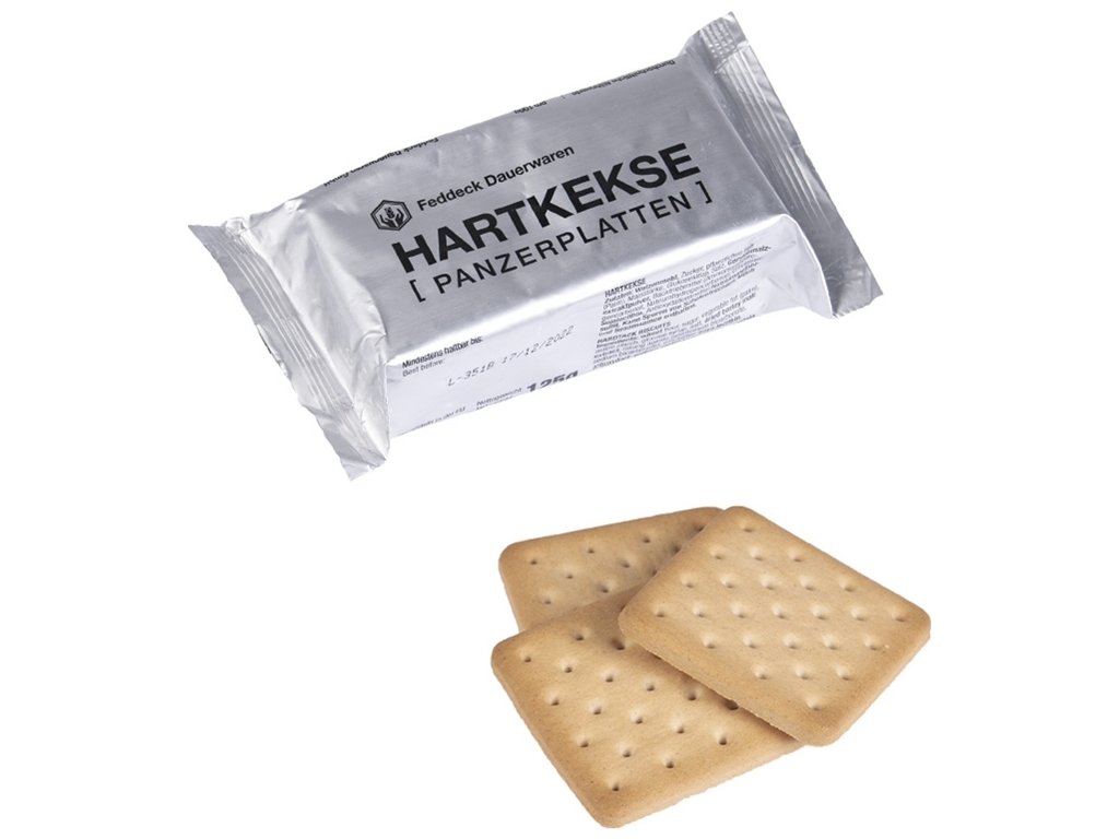 - slavné tvrdé krekry / sušenky „Panzerplatten“ německé armády Bundeswehr