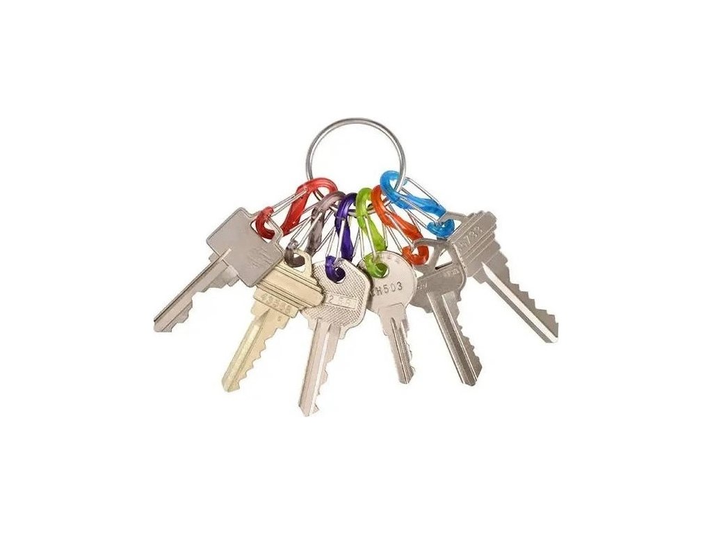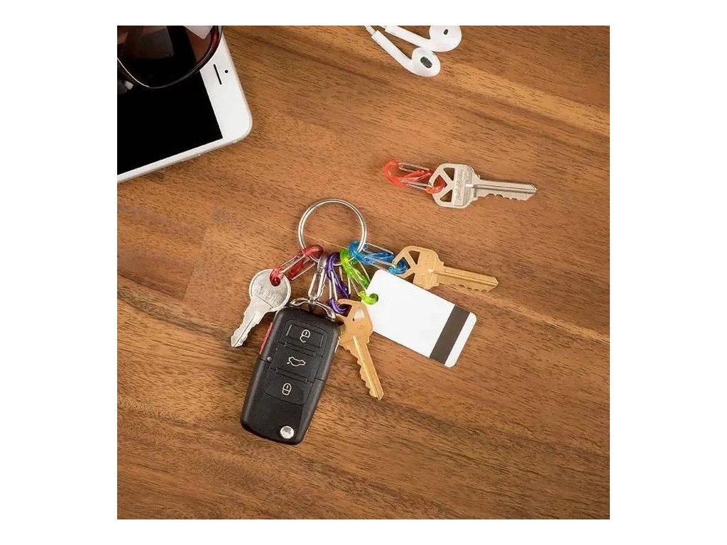 - Praktický kroužek na klíče se 6 různě barevnými mini karabinkami.