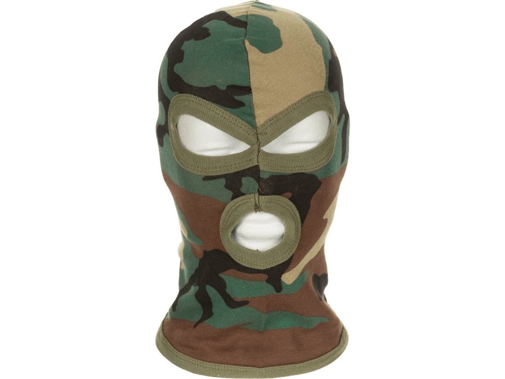 - Balaclava, 3 Hole, thin, US Woodland Camo, 100 % Cotton.