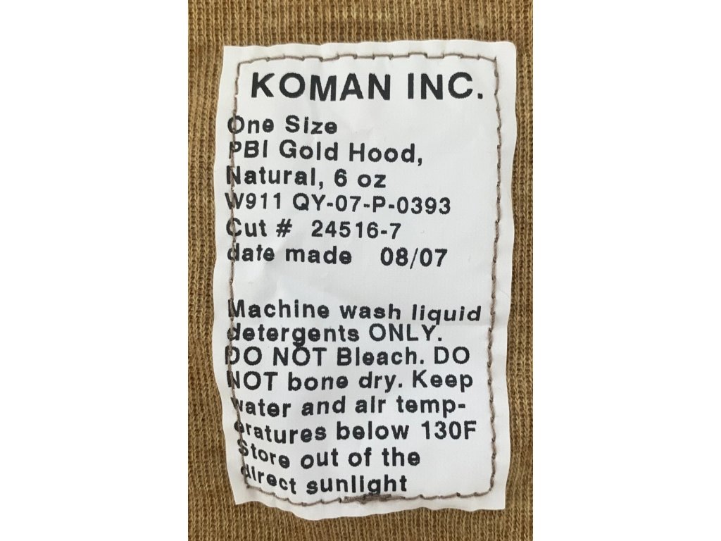 - KOMAN INC. One Size PBI Gold Hood, Natural, 6 oz / W911 QR-07-P-0393.