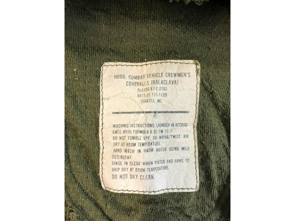 - HOOD, COMBAT VEHICLE CREWMEN'S COVERALLS (BALACLAVA) / US Government Issue Balaclava