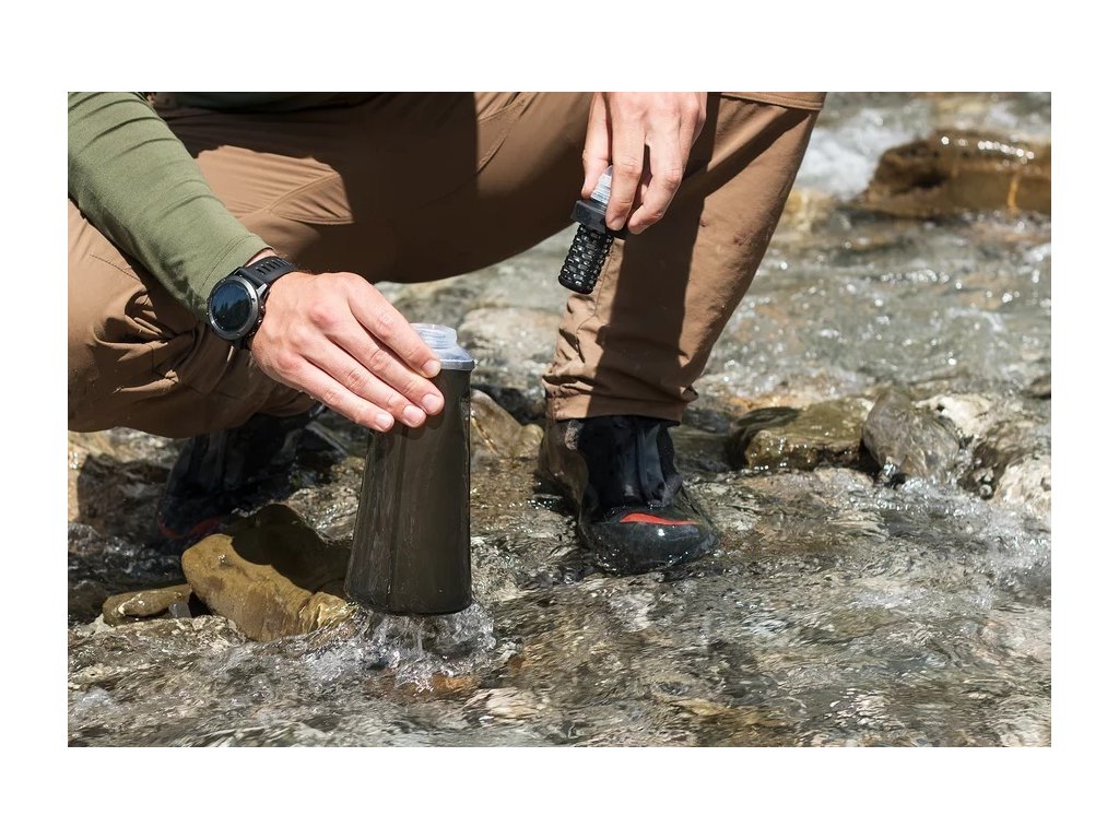 - díky skládacímu sáčku na pití se filtr vejde i do běžeckých kalhot, cyklistických kalhot, záchranných vest a rybářských vest
