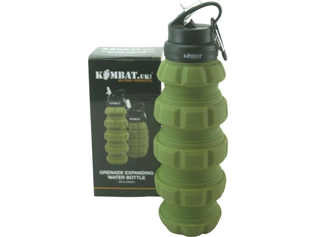 - Kombat® Grenade Expanding Water Bottle - Olive Green (OG).