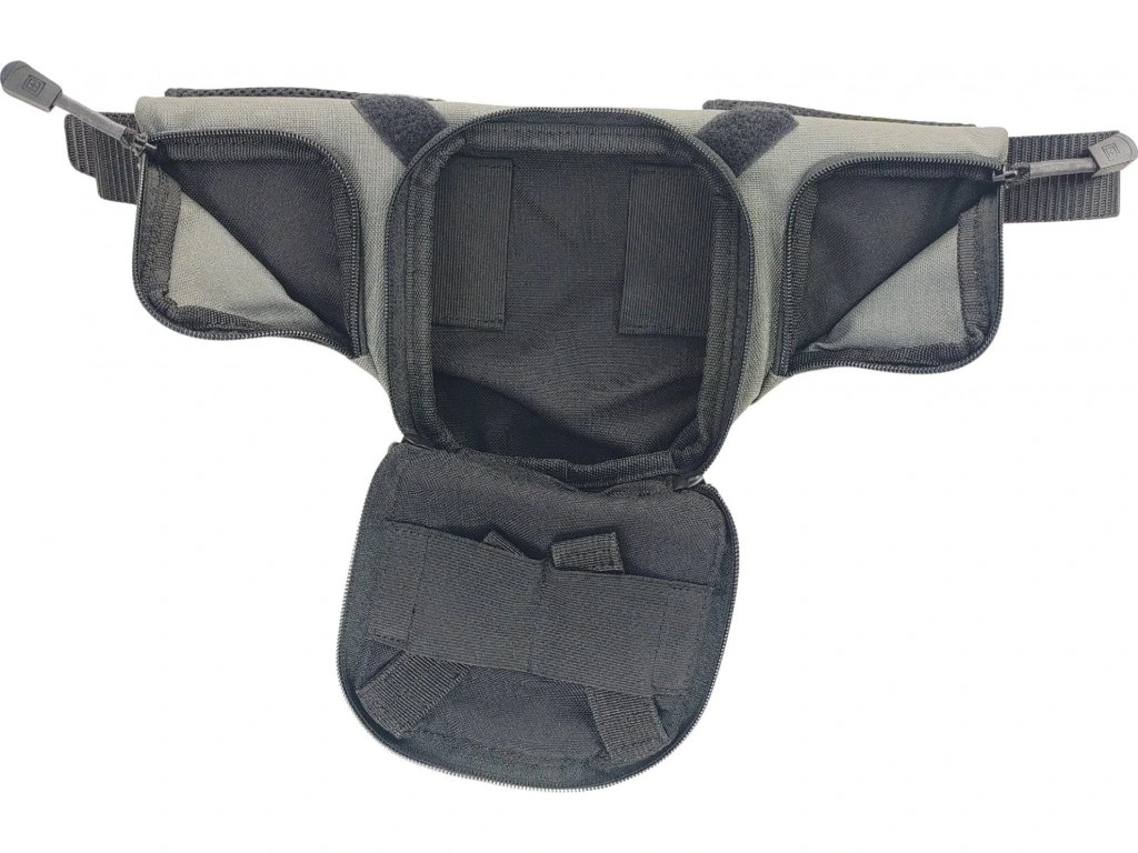 - Uvnitř velké kapsy jsou 4 elastické popruhy k zajištění pistole a 2 pro náhradní zásobníky.