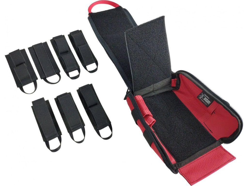 - Sada obsahuje: pouzdro, 7 kusů vnitřních úchytů různých velikostí na suchý zip, označení (zdravotní červený kříž na suchém zipu).