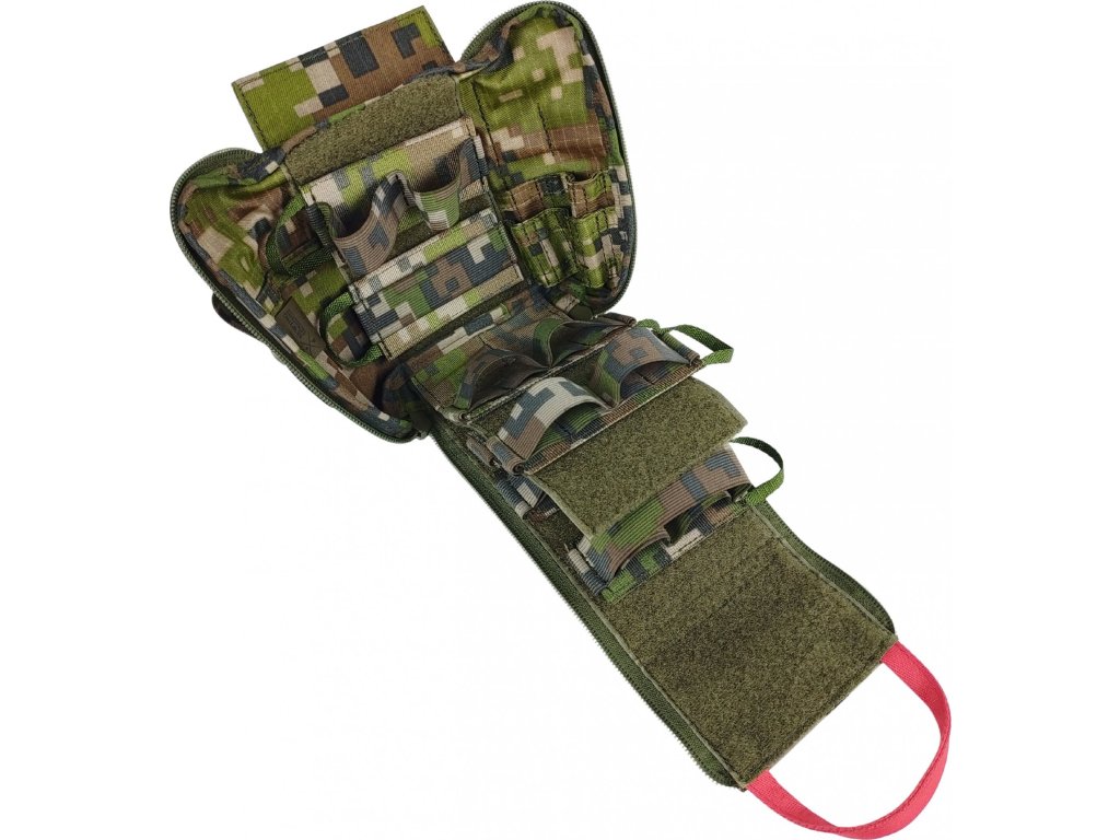 - Jedná se o taktickou lékárničku určenou pro poskytnutí první pomoci v terénu, zejména pro vojenské nebo outdoorové účely.