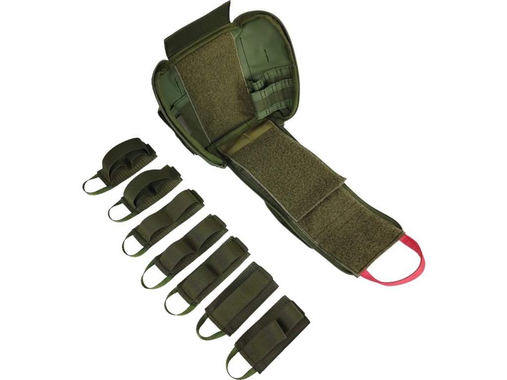 - Lékárnička je navržena pro rychlý přístup k obsahu s možností uchycení k nosného systému univerzální vazby MOLLE.