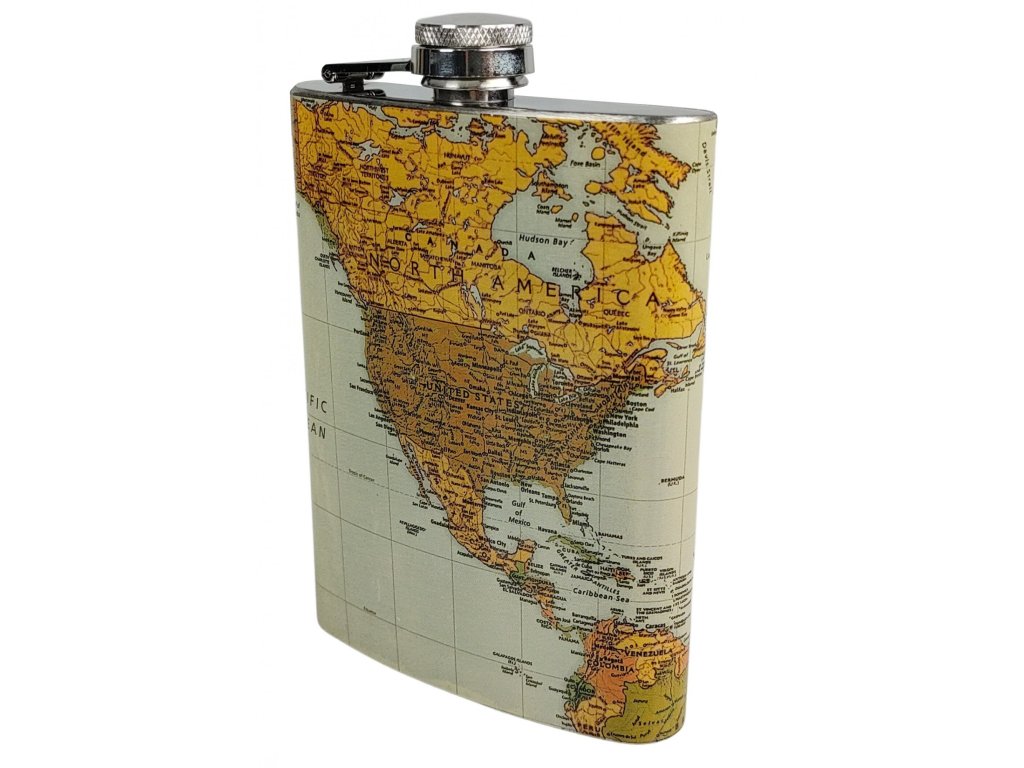 Likérka placatka mapa světa 8oz. 240ml nerez