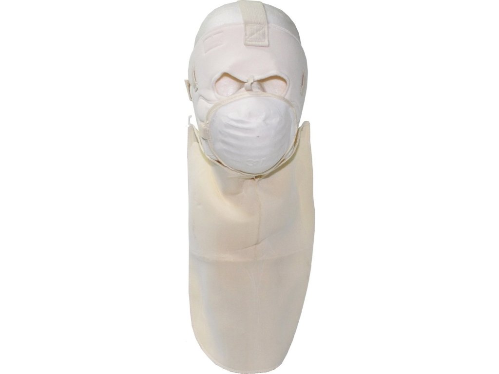 Tato maska, vyrobená v USA v průběhu 80. let 20 století společností SourceAmerica® z bílé bavlny a nylonu, je skutečnou armádní výbavou.