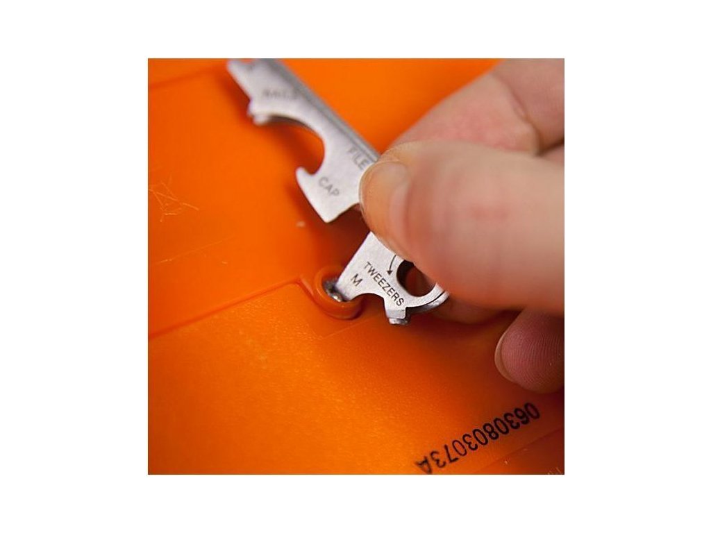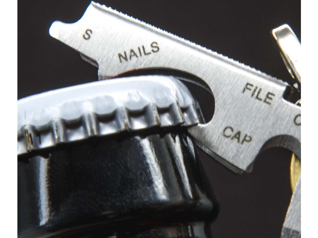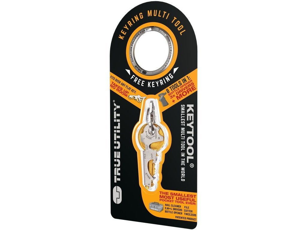 True Utility KeyTool jednoduše stylově zabalený nástroj na klíči, využívající jej pro zvětšení síly páky pro otvírač lahví, pro 3 různé velikosti šroubováku, včetně šroubováku na brýle. Kapesní nářadí klíč KeyTool TU247 je z nerezové oceli a s 8 funkcemi. Nůž dodáván na dárkovém papírovém blistru. Přívěšek na klíče obsahuje také pilník na nehty, čistič nehtů, stříhač nití a dokonce pinzetu. Vypadá skvěle, funguje skvěle a nezabírá místo ve vaší kapse - vůbec!