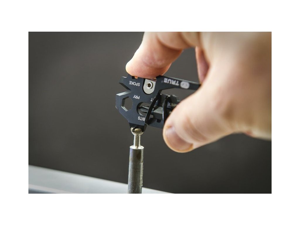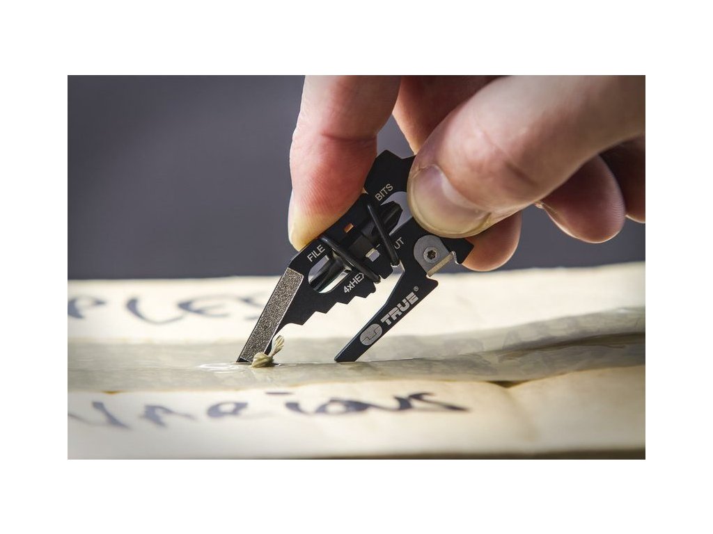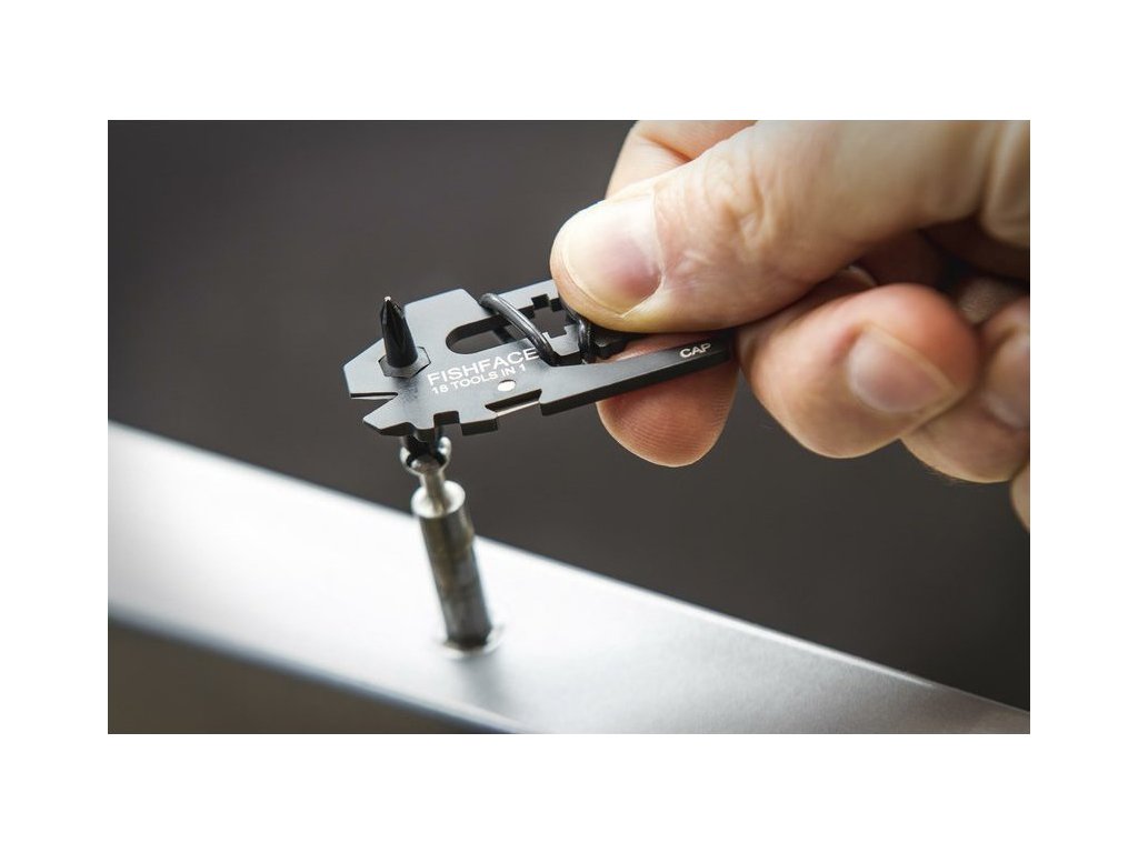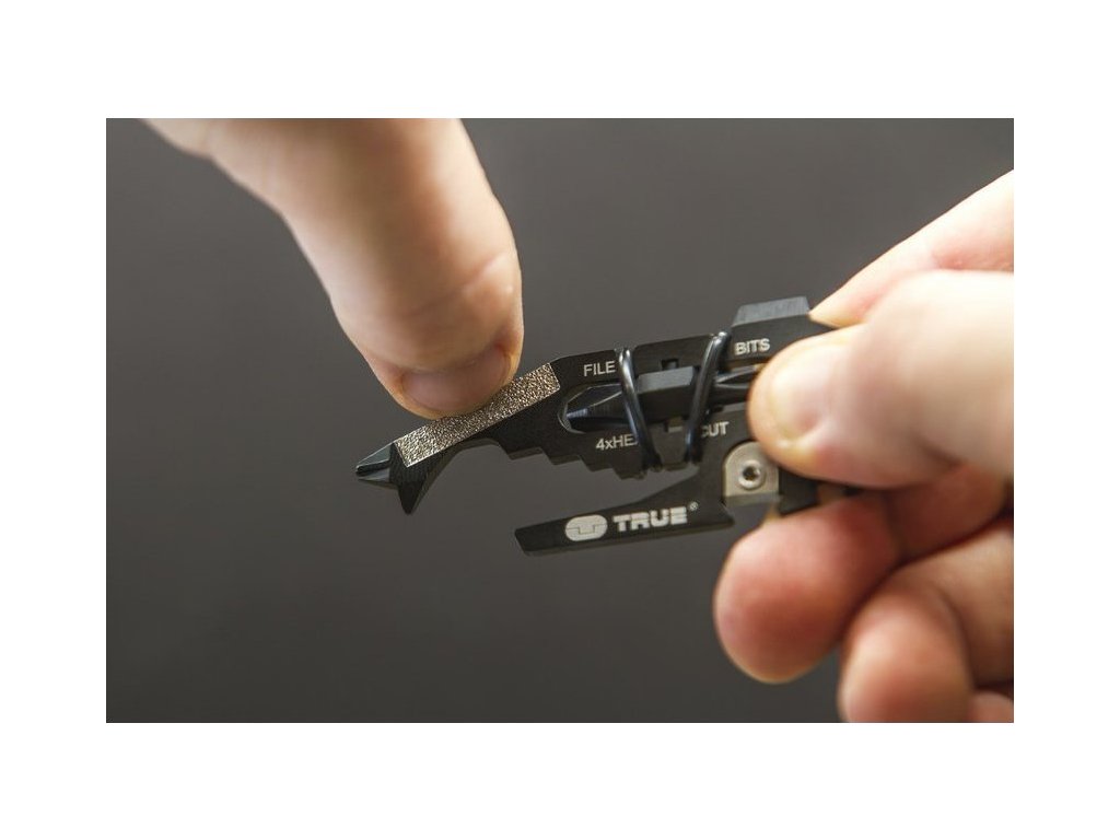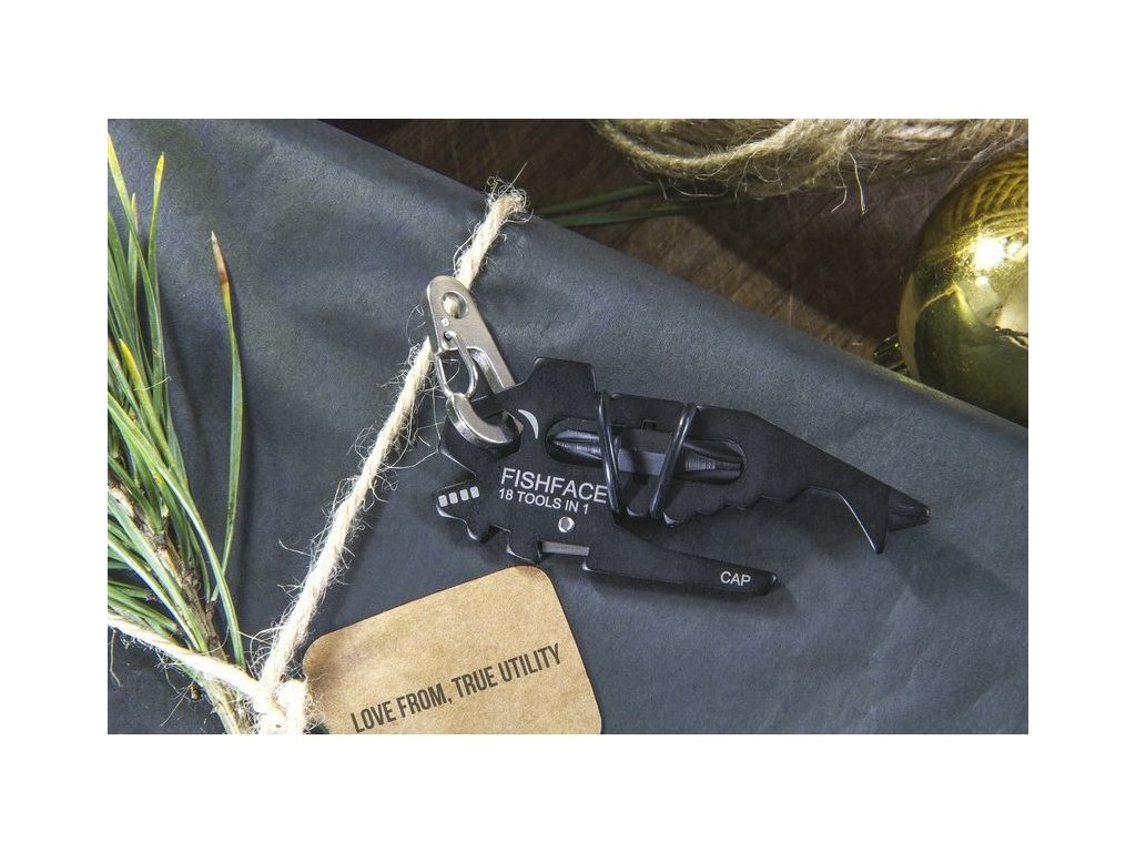 Malý multitool True Utility FishFace se svou velikostí mezi klíči na přívěšku ztratí, ale svým výkonem je určitě překoná. Elegantní maličká souprava s hmotností pouhých 19 gramů a o délce 7 cm obsahuje celkem 18 nástrojů. Kromě tradičního otvíráku na lahve, nože na otvírání kartonových krabic, klasických plochých šroubováků a kitů křížových šroubováků, může nabídnout i takové věci jako pilníček na nehty nebo malou ostrou čepel například na přeříznutí provazu.